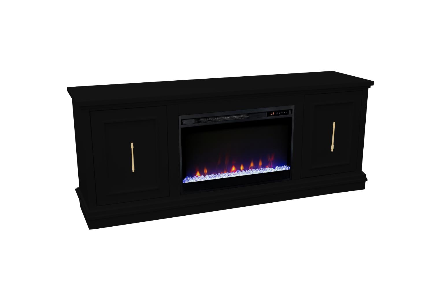 - Electric heated fireplace included with remote controlled heat and flame intensity