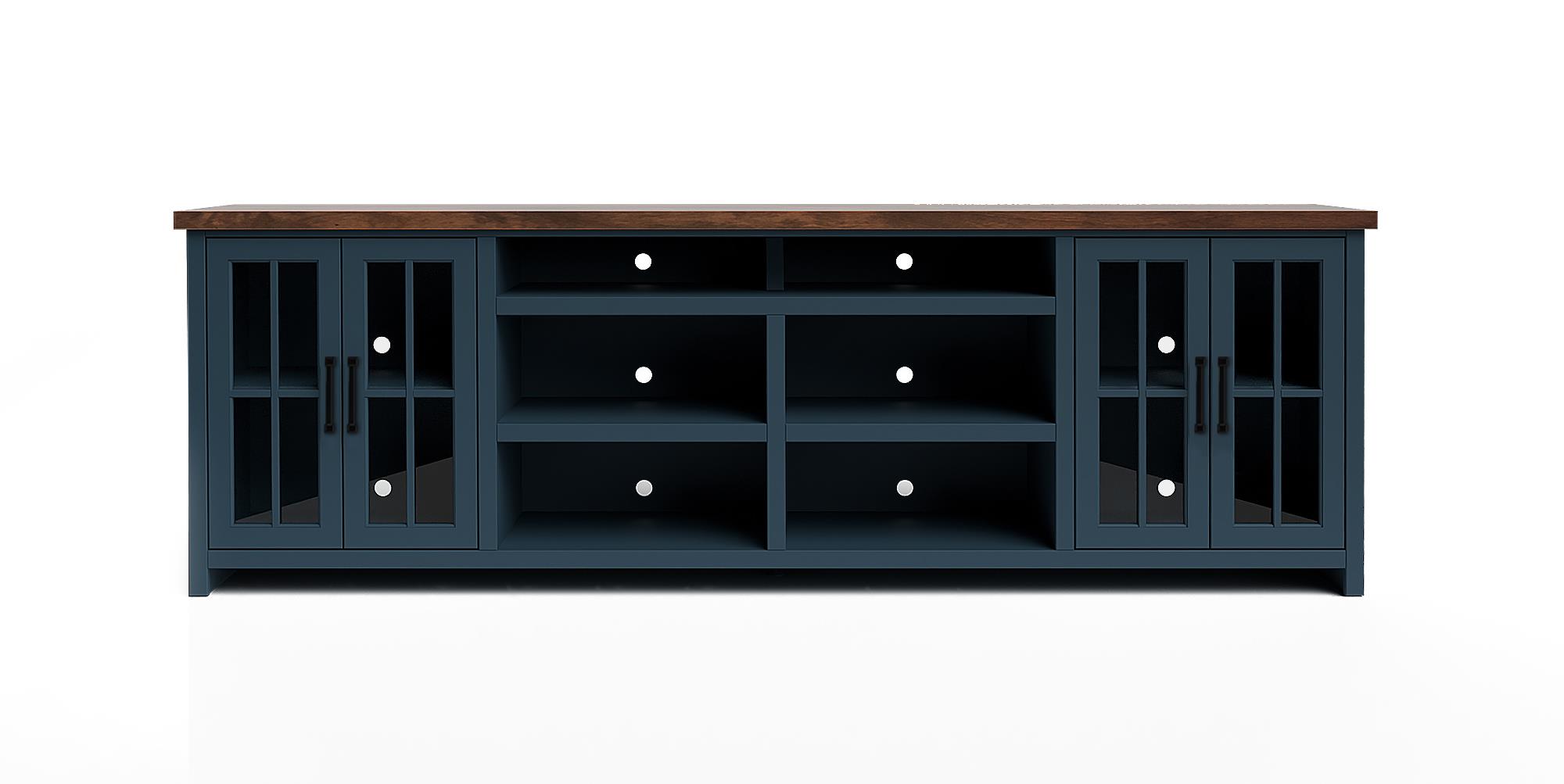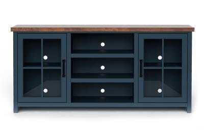 Dressed in an alluring Blue Denim finish with Whiskey top, Nantucket's Two Toned style creates a refreshing, new look to any room. Highlighting oil rubbed hardware and the glass panel doors in the consoles make a noticable statement. Sit back, relax and love your transformed home.