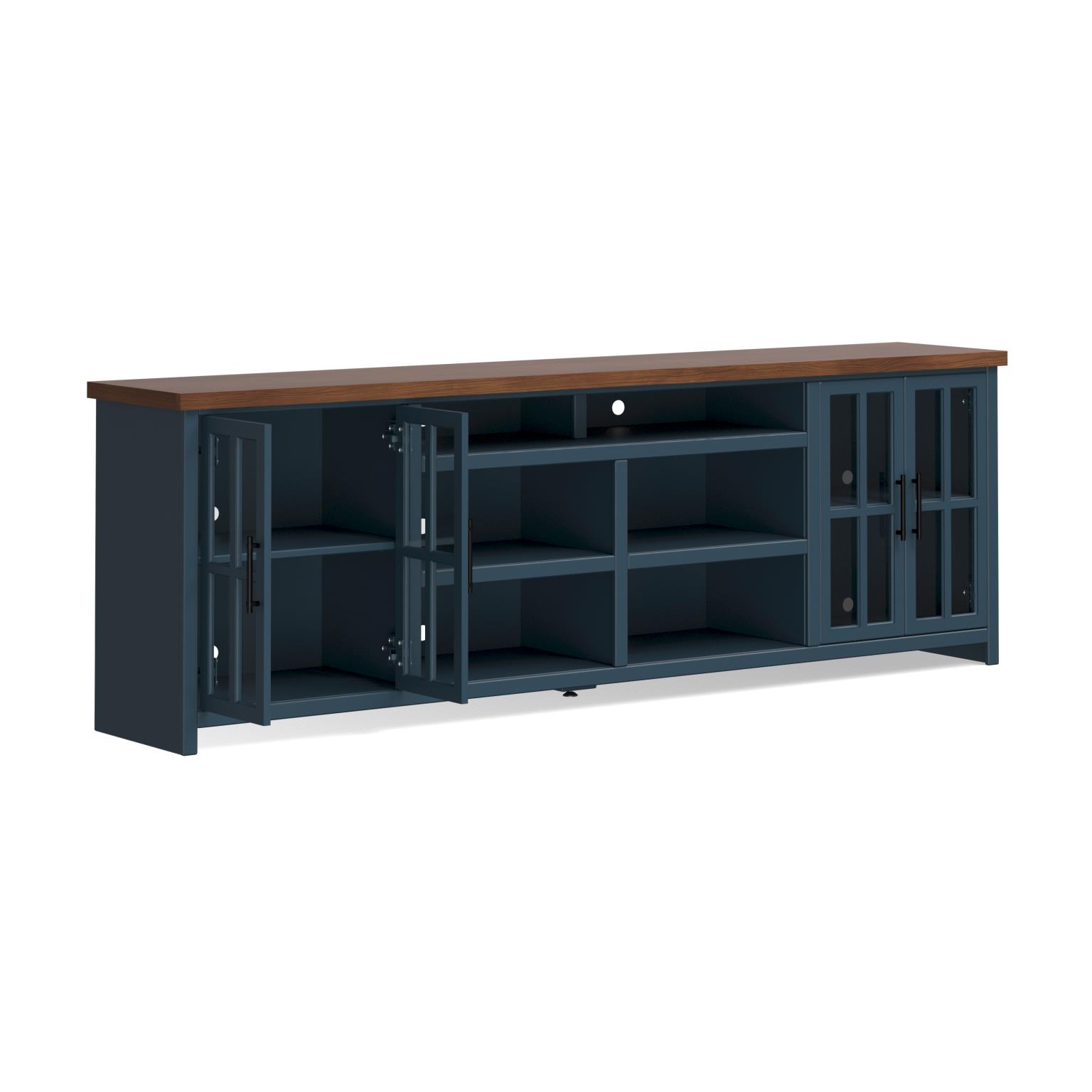 - Holds up to a 110" TV without hanging over w/o the hutch (85" w/hutch)