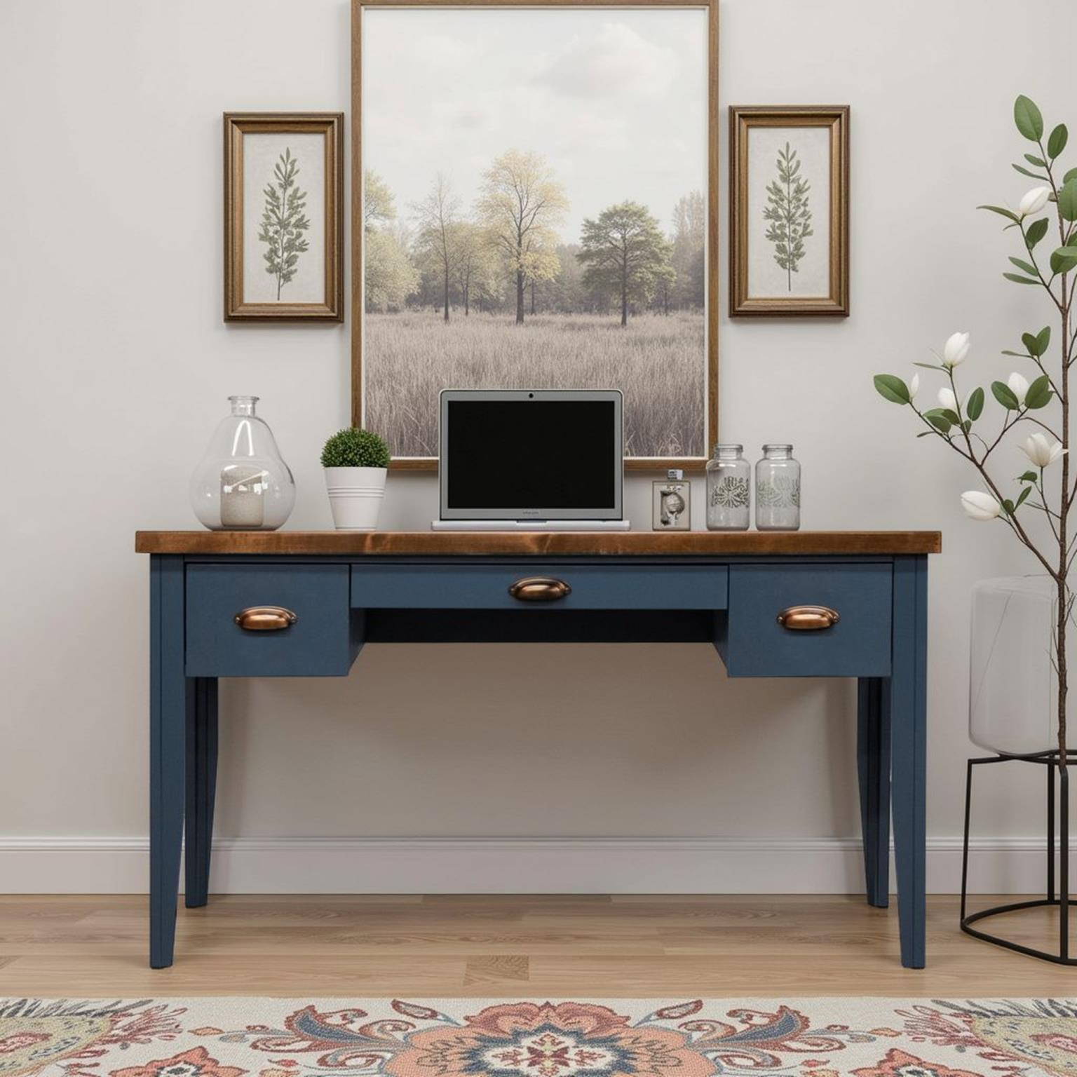 Dressed in an alluring Blue Denim finish with Whiskey top, Nantucket's Two Toned style creates a refreshing, new look to any room. Highlighting oil rubbed hardware and the glass panel doors in the consoles make a noticable statement. Sit back, relax and love your transformed home.