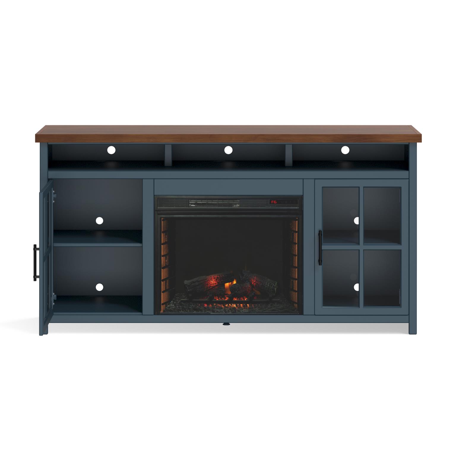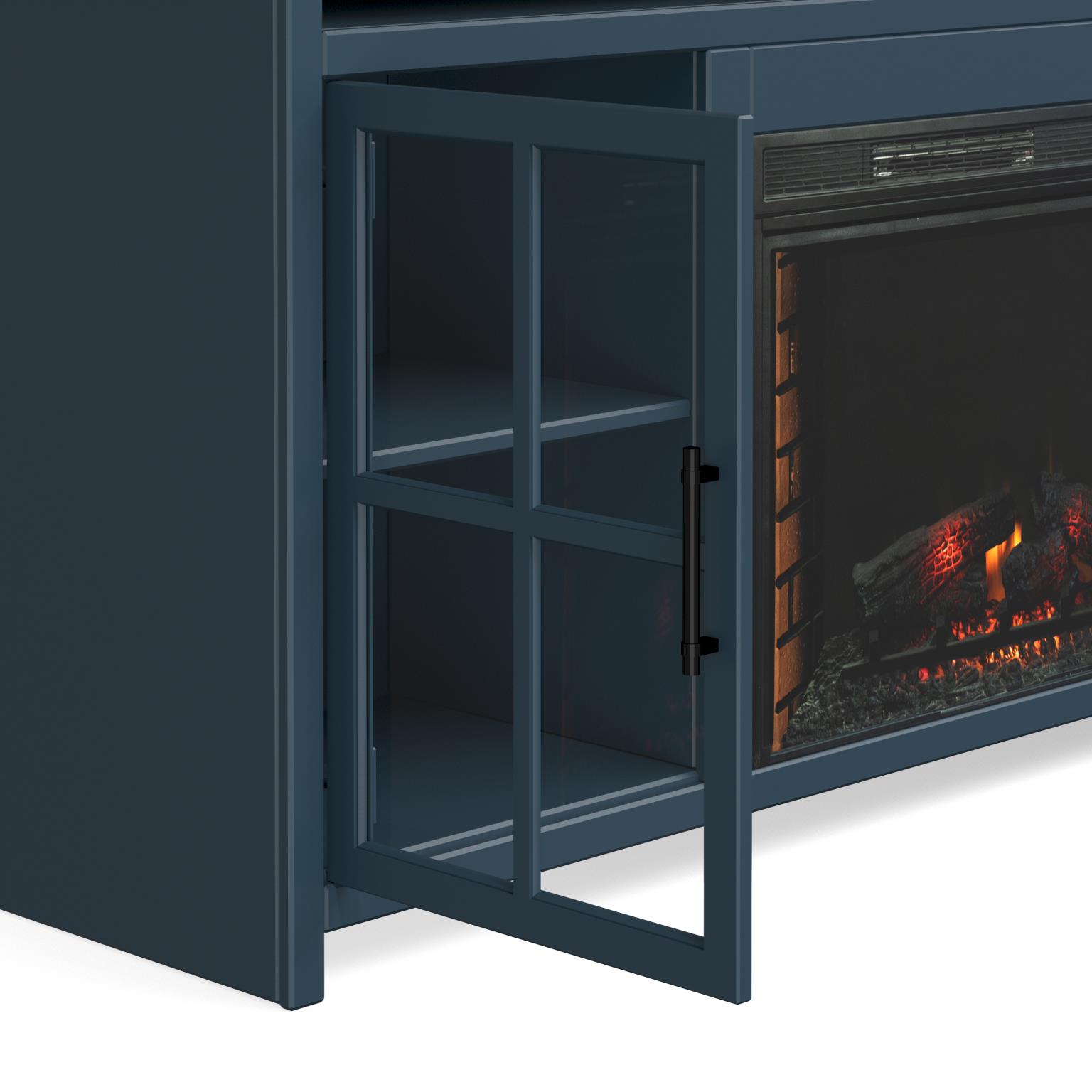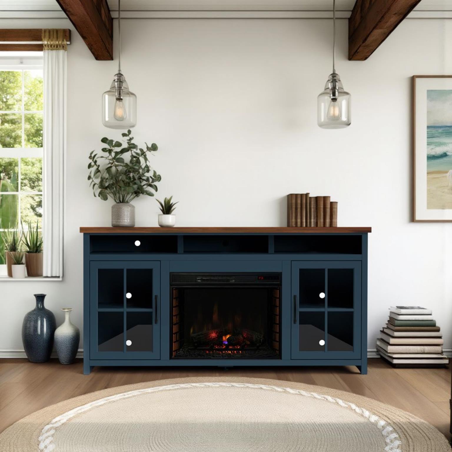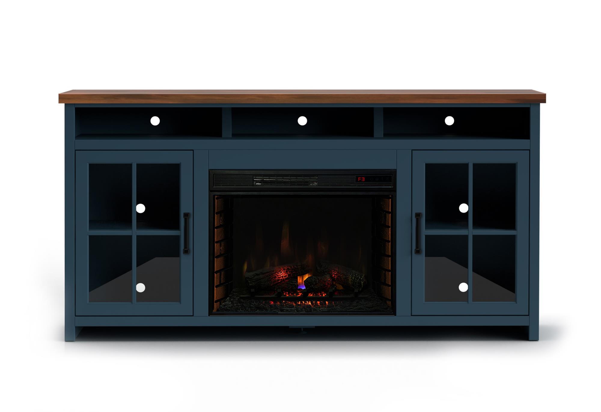 - Electric heated fireplace included with remote controlled heat and flame intensity