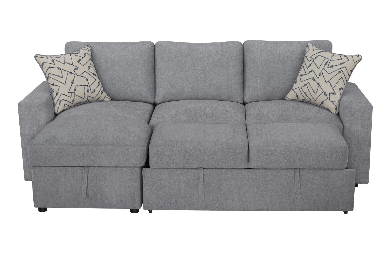 - Trundle Sleeper Sofa with Extra Storage under chaise and wood shelves on sides