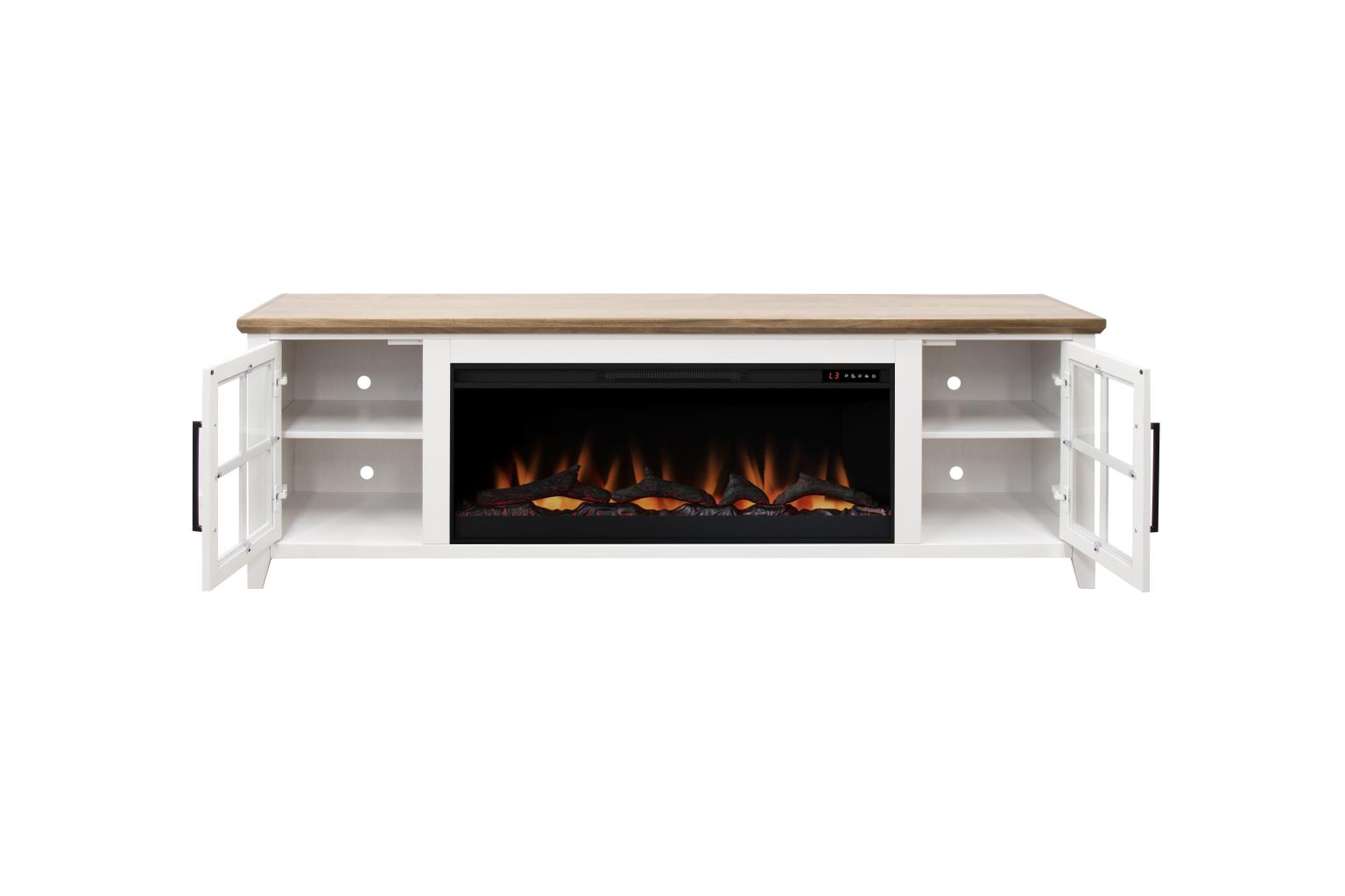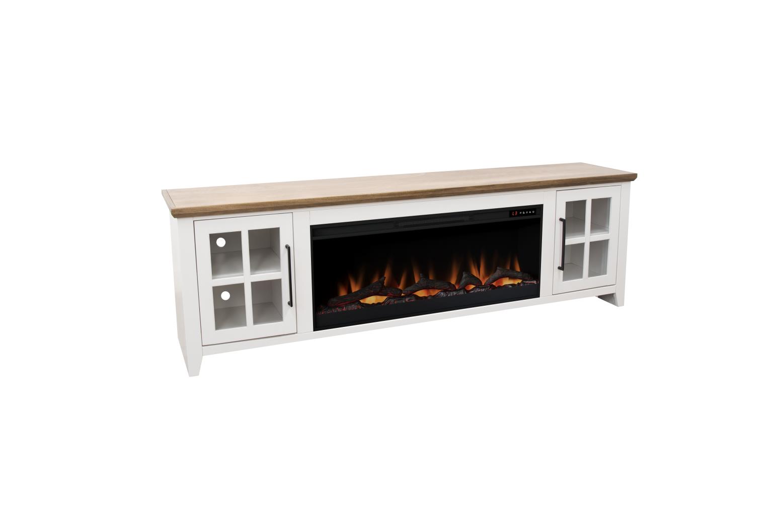 - Electric heated fireplace included with remote controlled heat and flame intensity