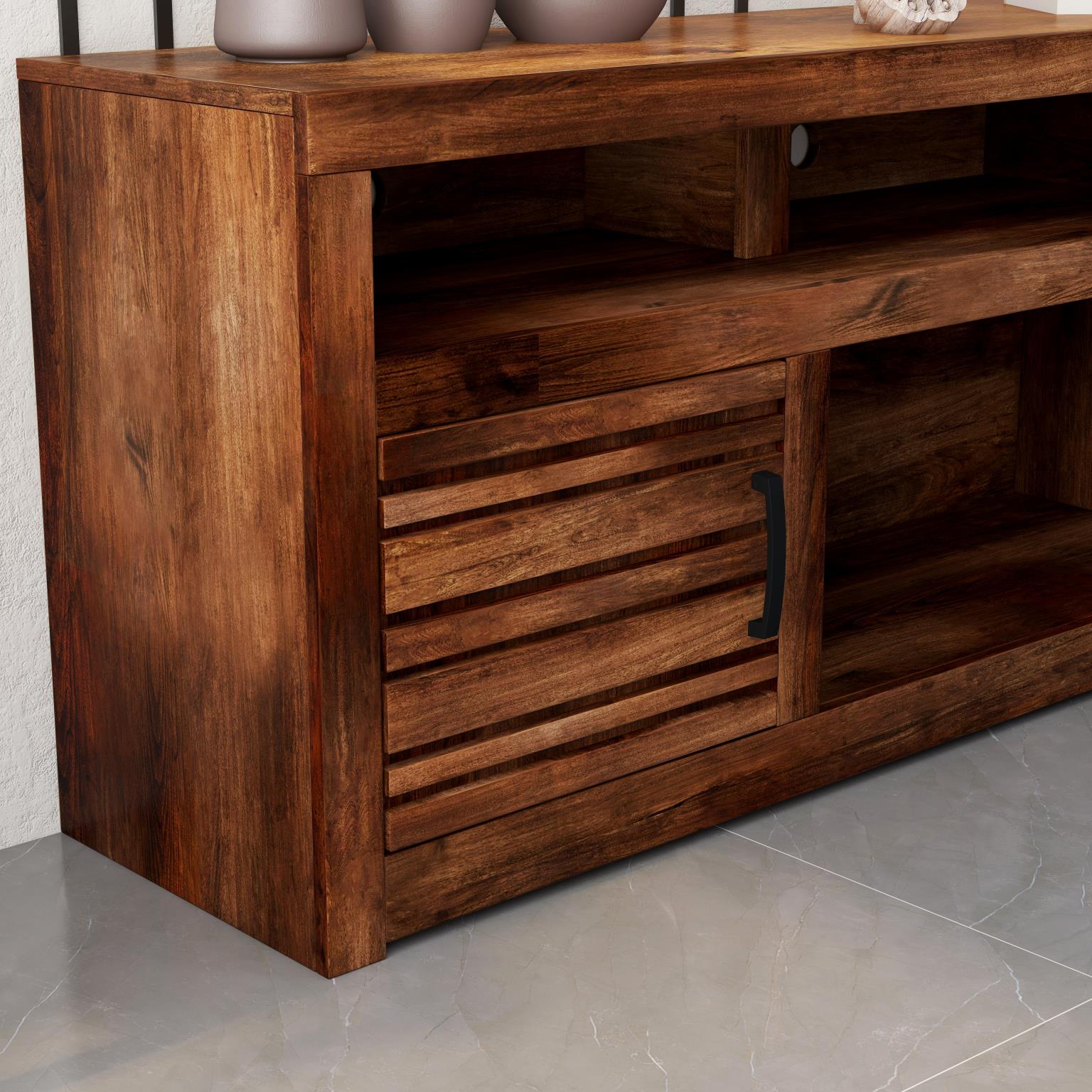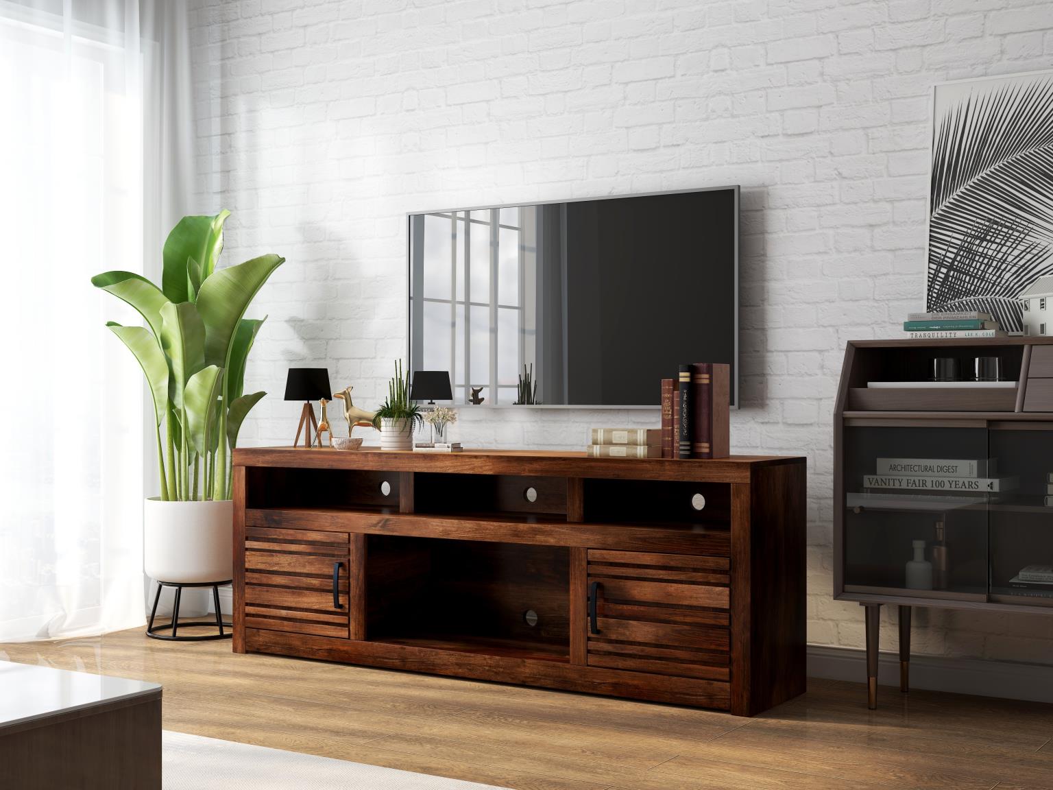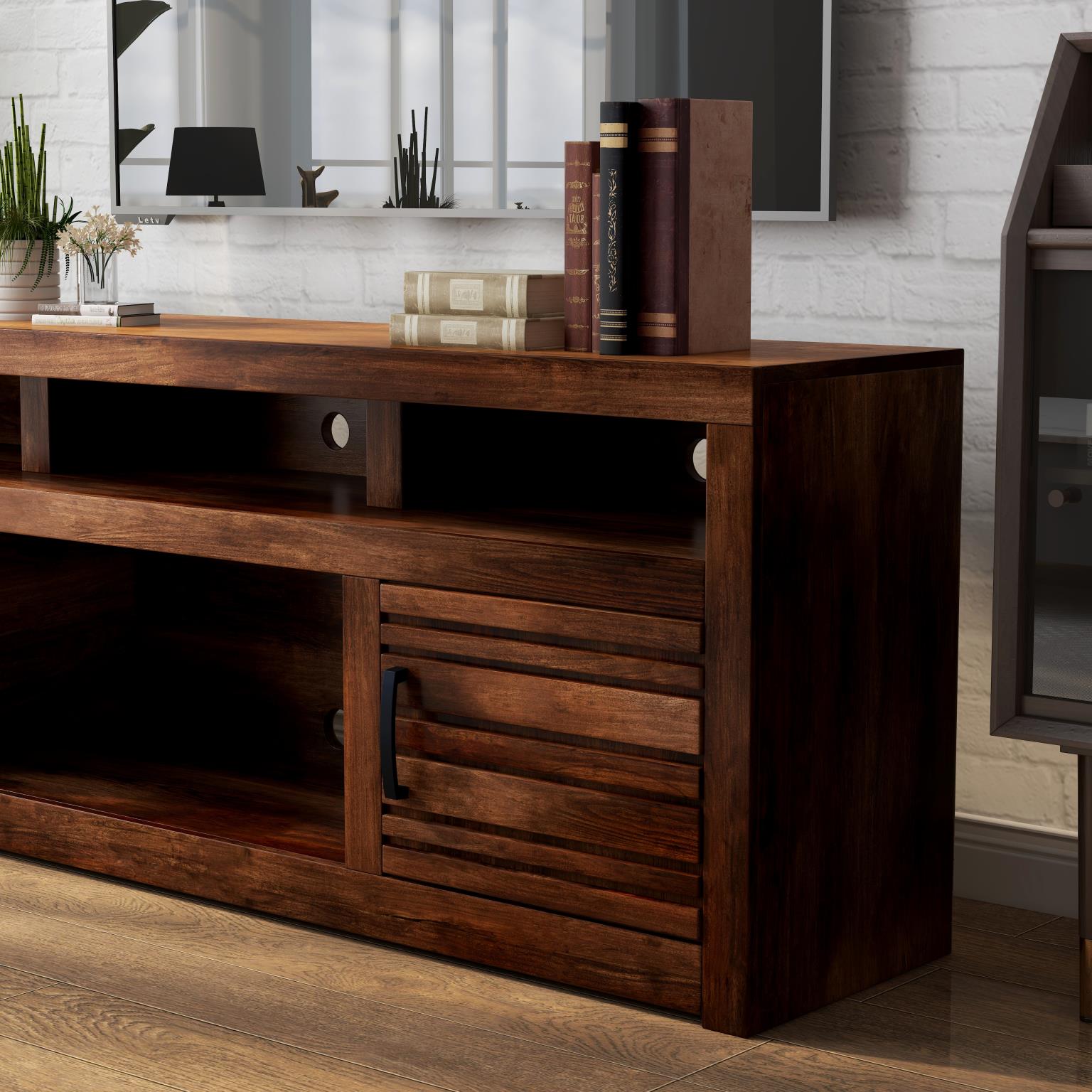 - Holds up to a 82" TV without hanging over with and without bridge/back/piers