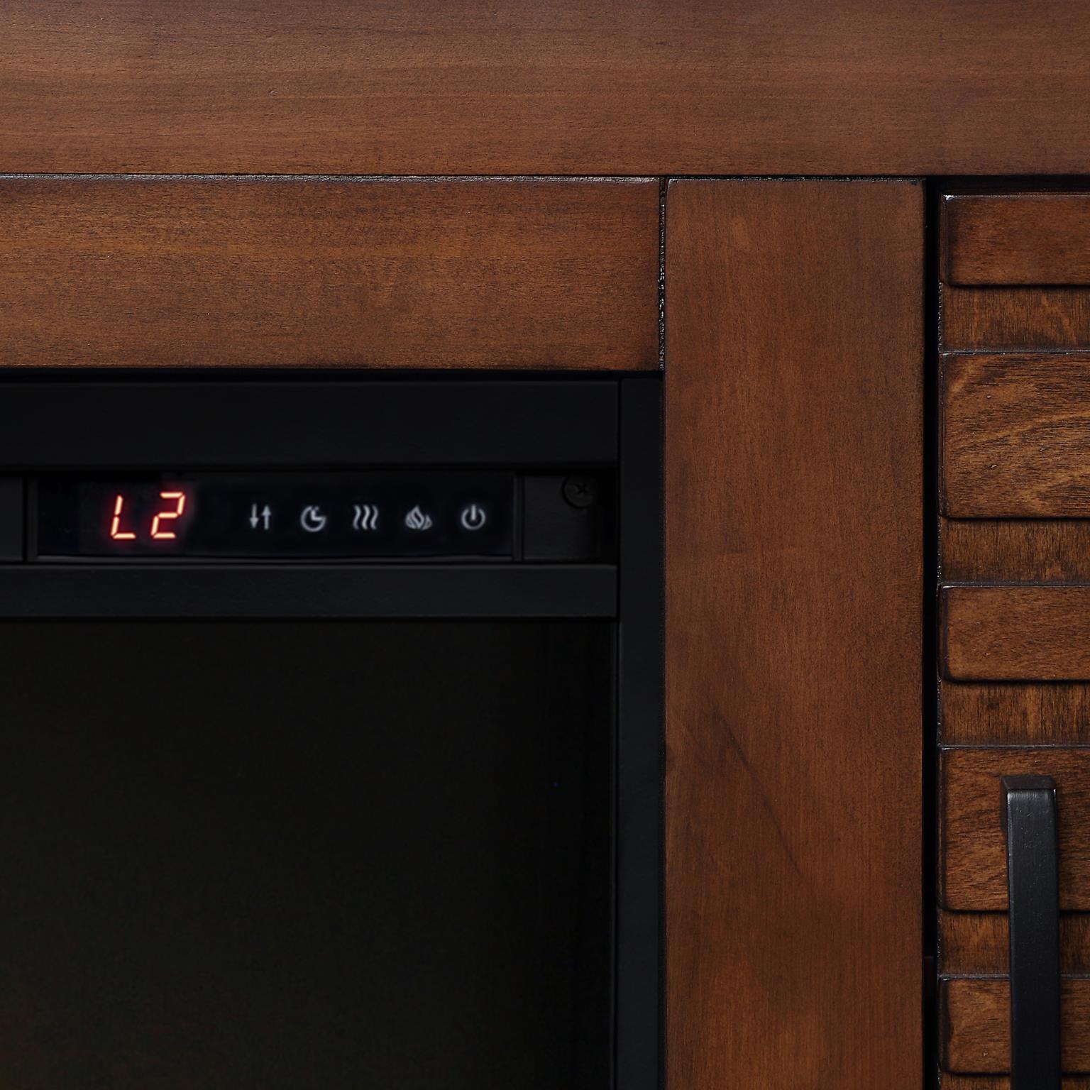 - Electric heated fireplace included with remote controlled heat and flame intensity
