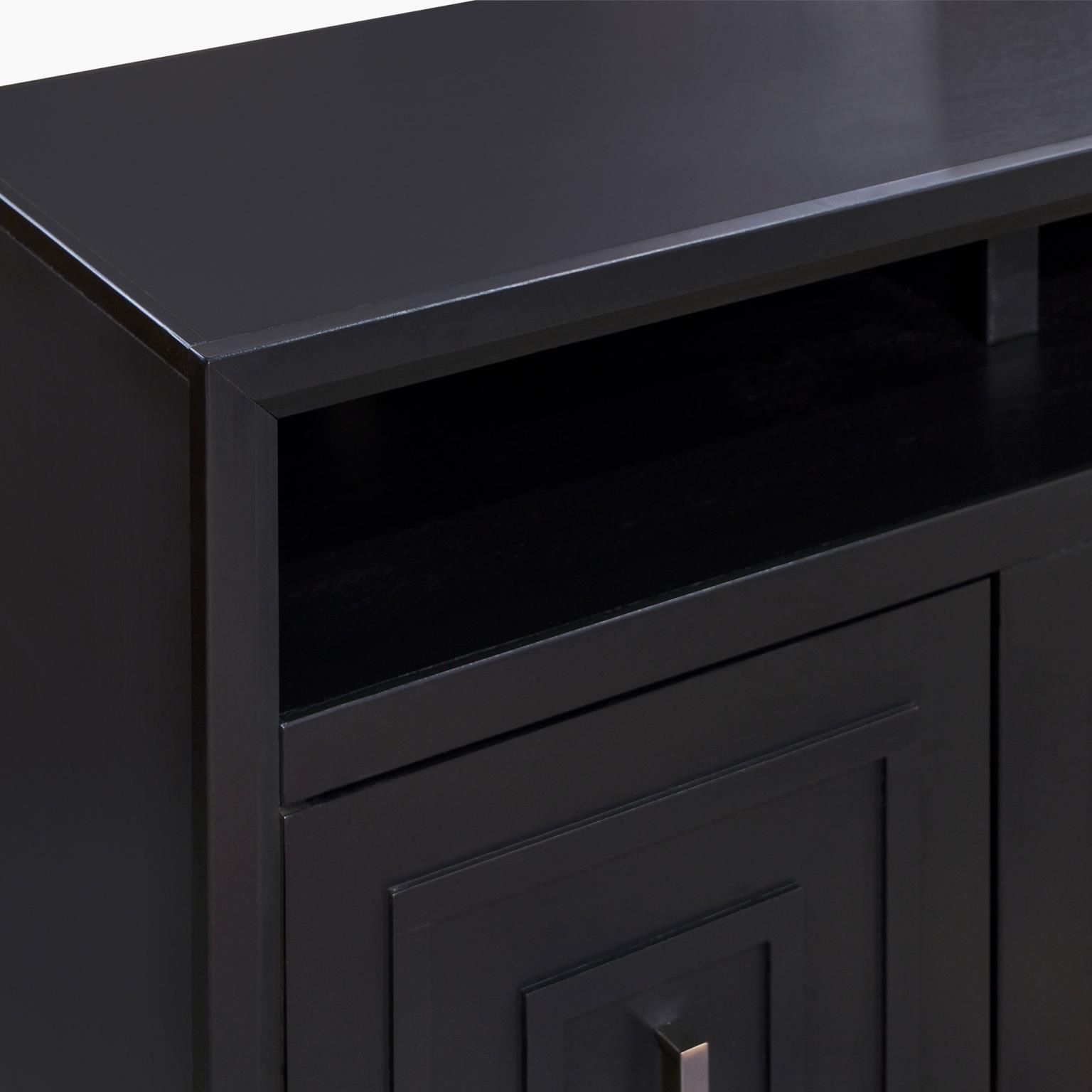 - Holds up to a 95" TV without hanging over w/o hutch (70" w/hutch)