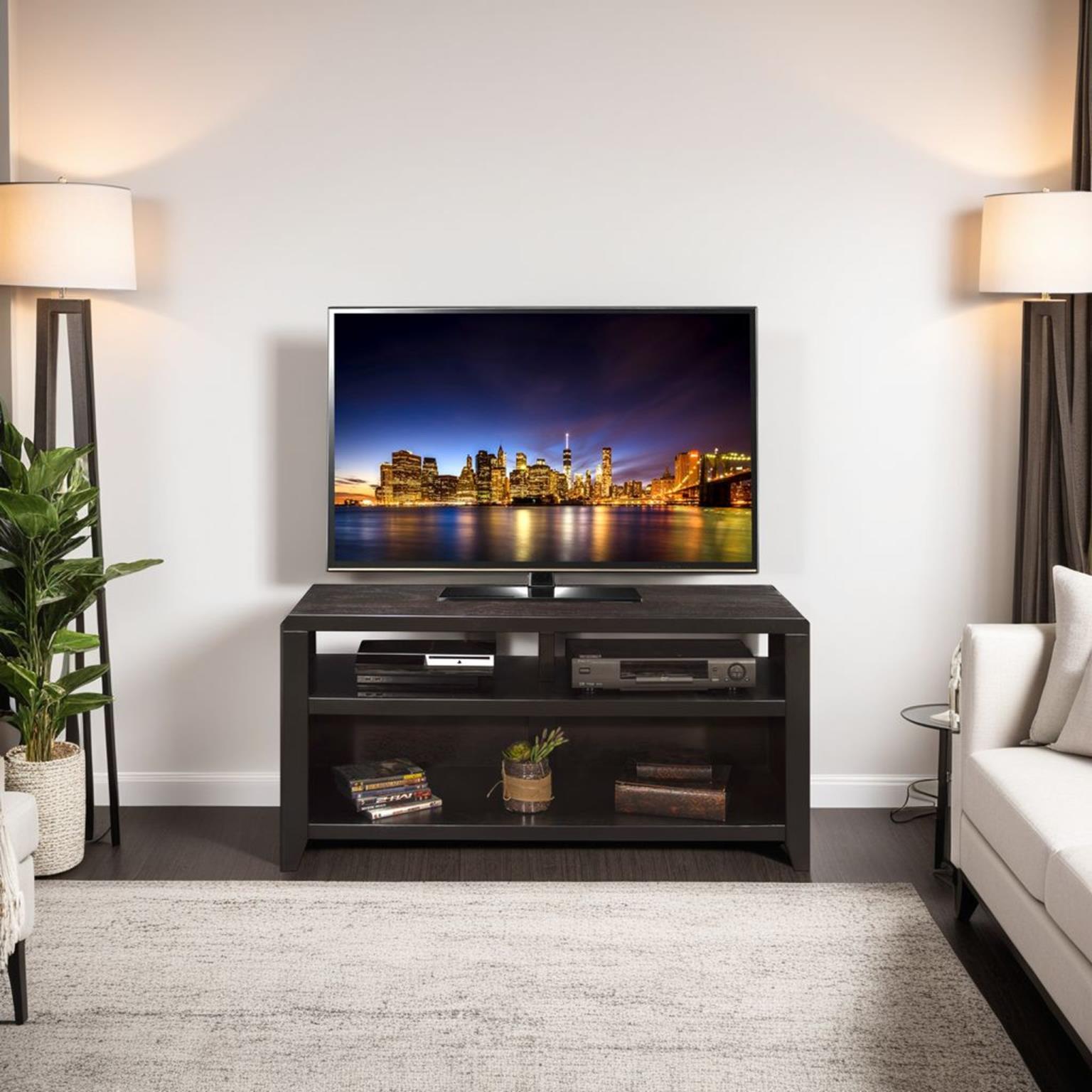 - Holds up to a 55" TV without hanging over