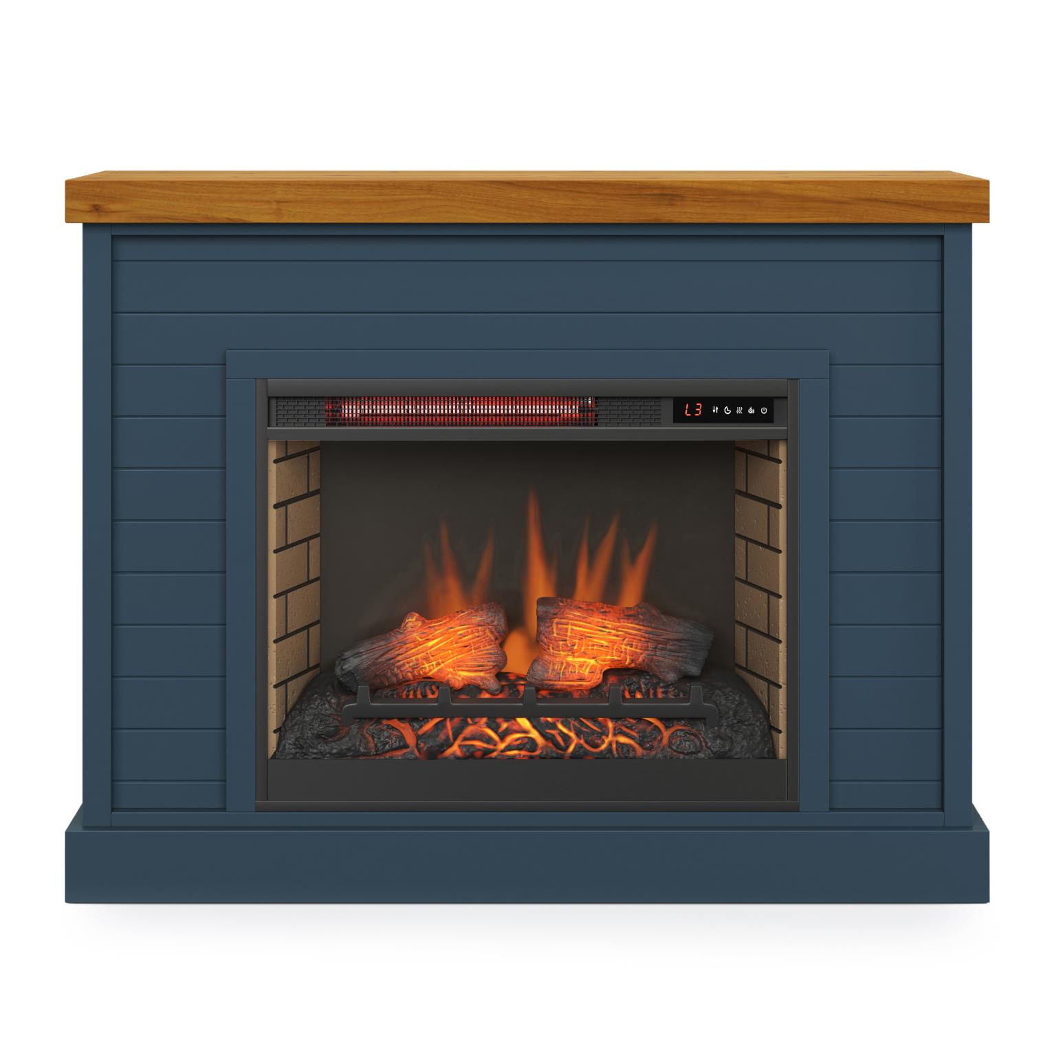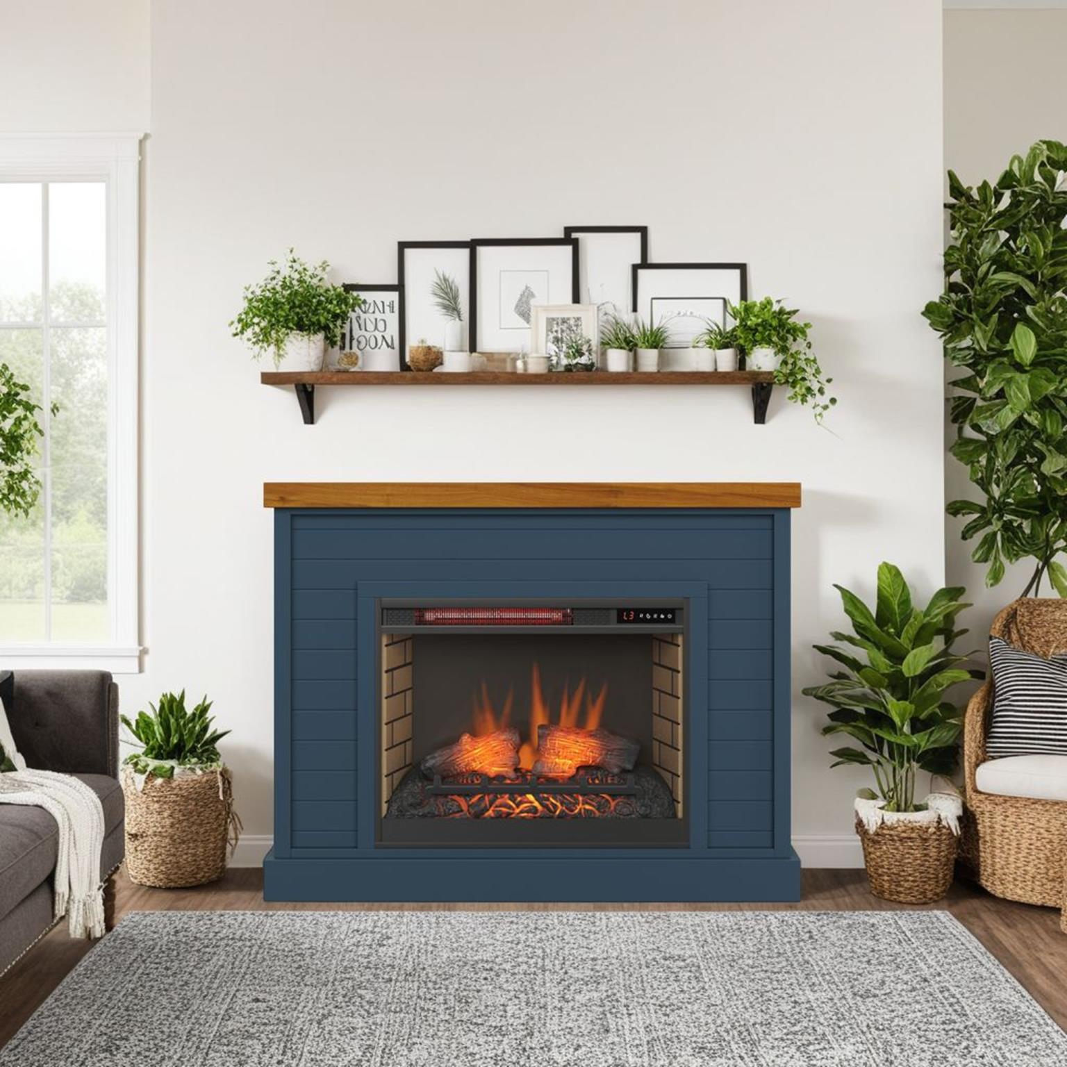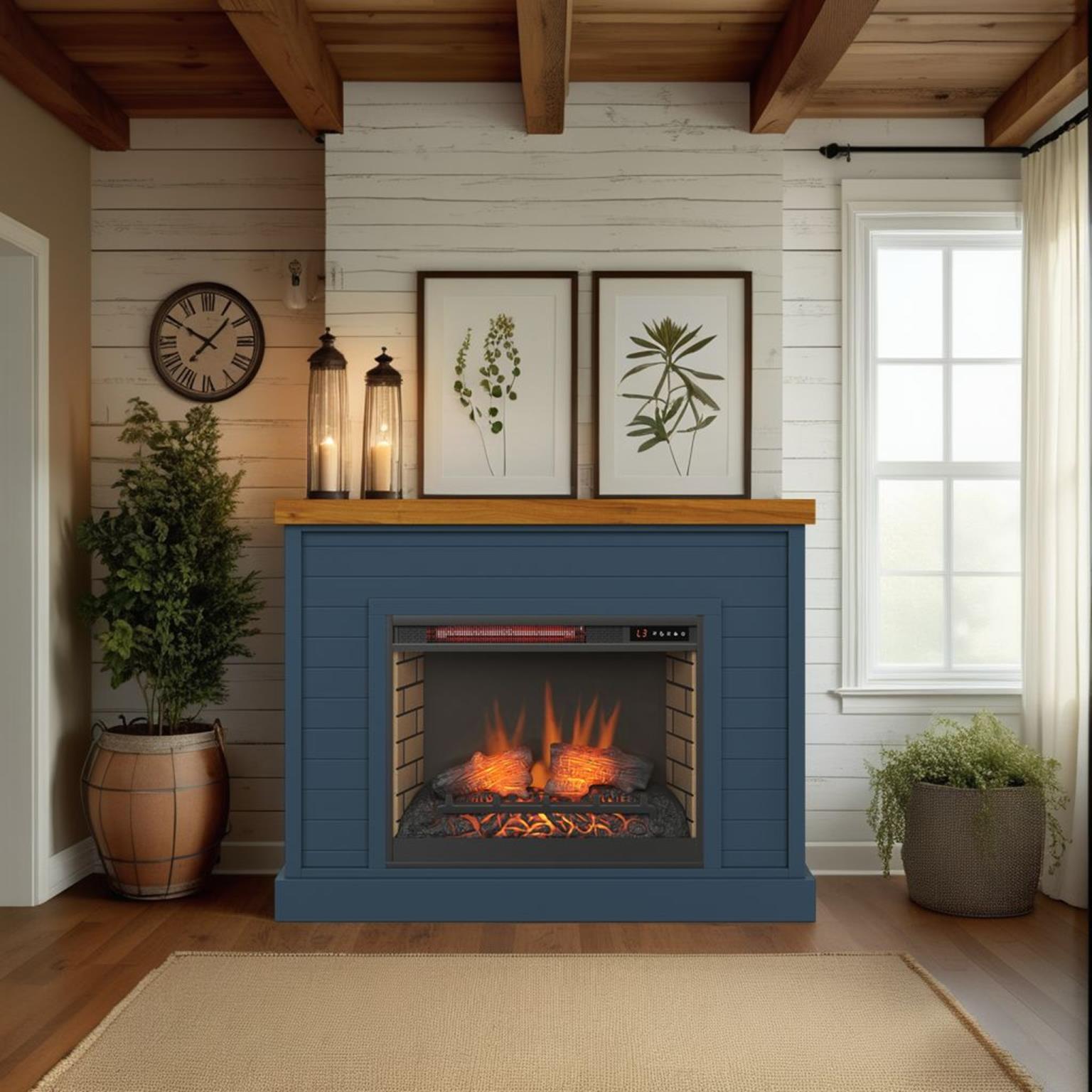 - Electric heated fireplace included with remote controlled heat and flame intensity