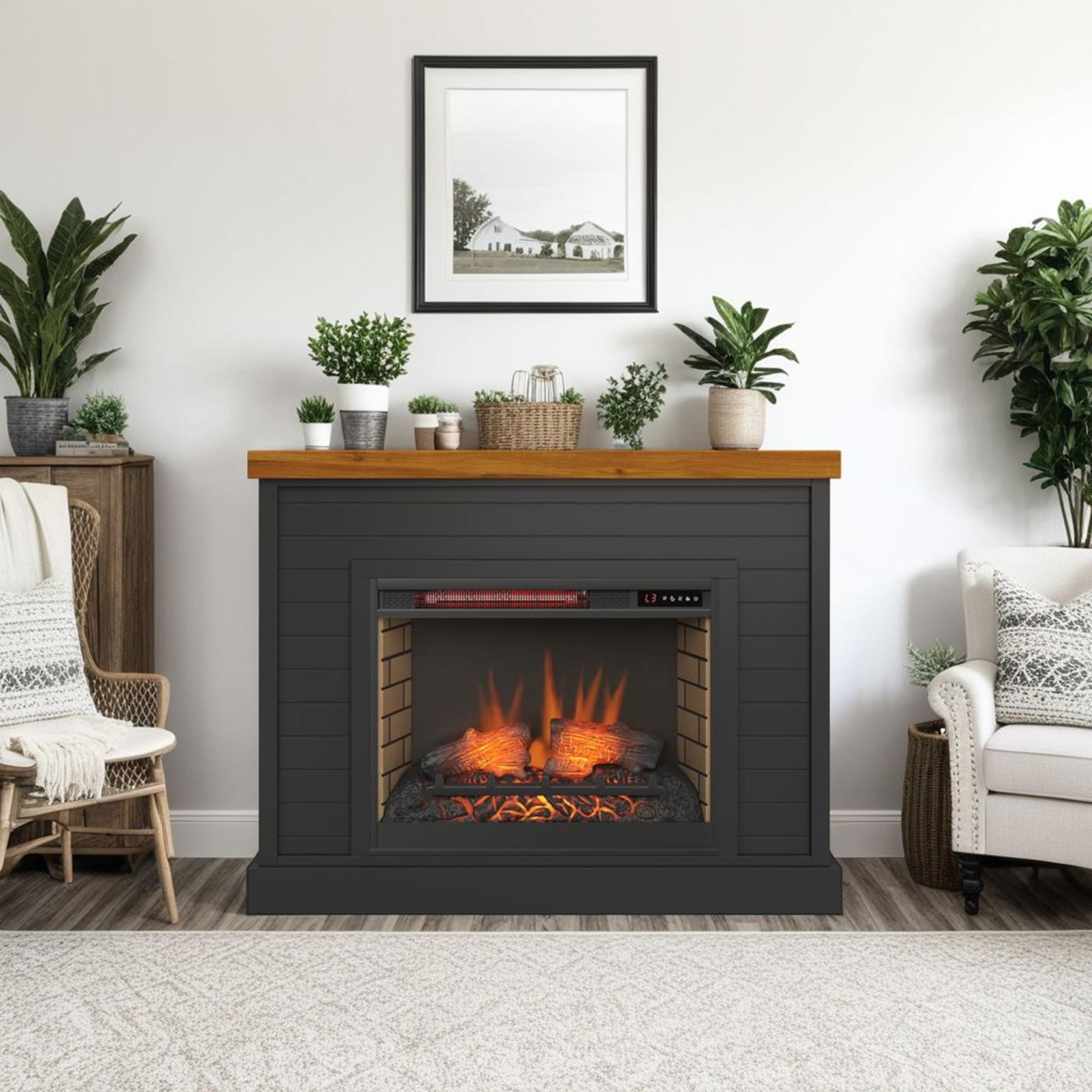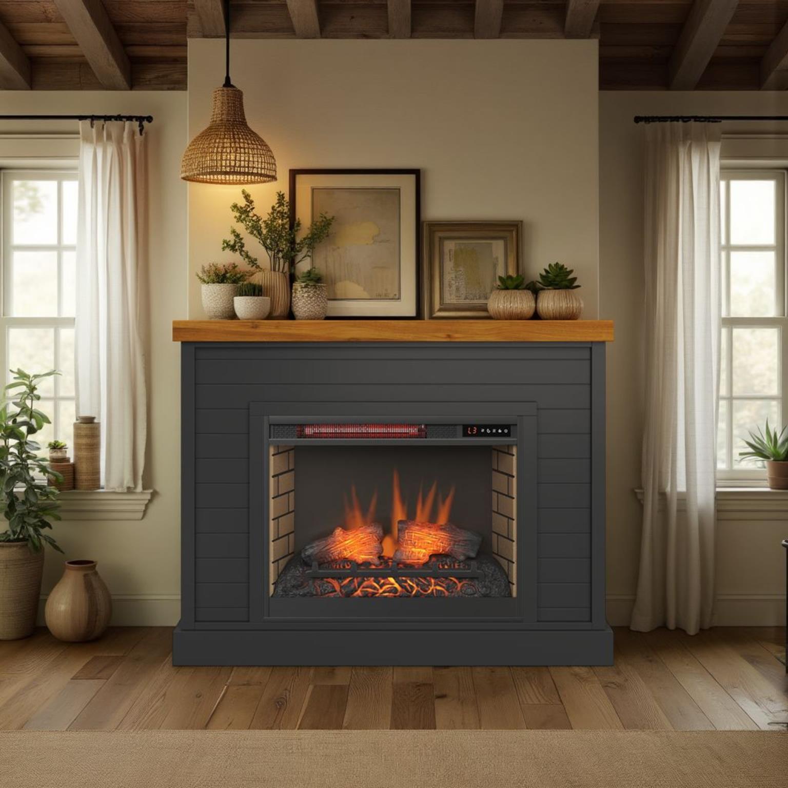 - Electric heated fireplace included with remote controlled heat and flame intensity