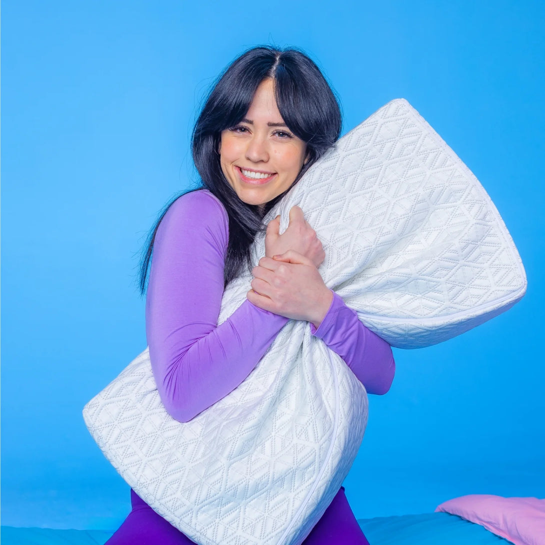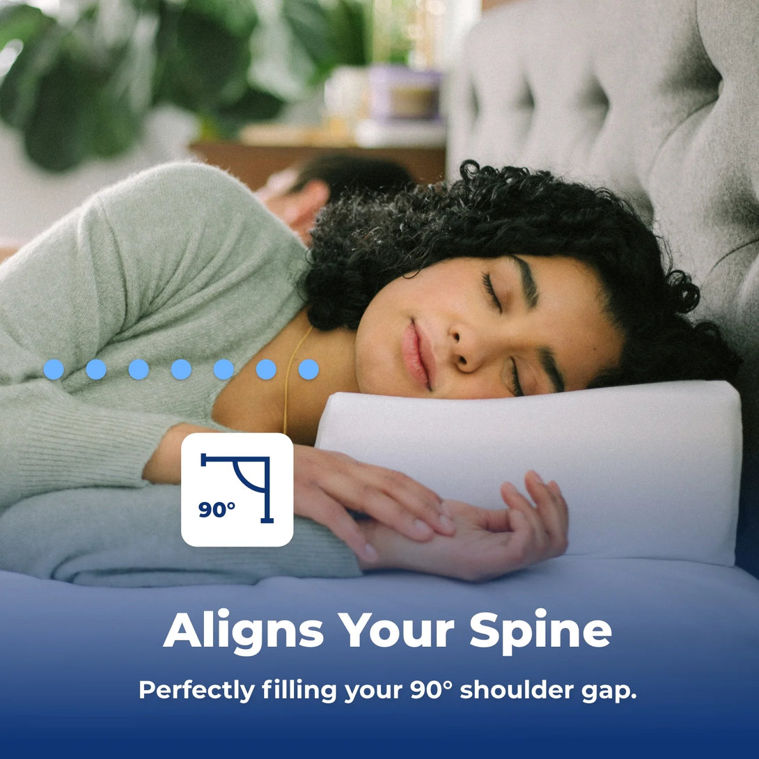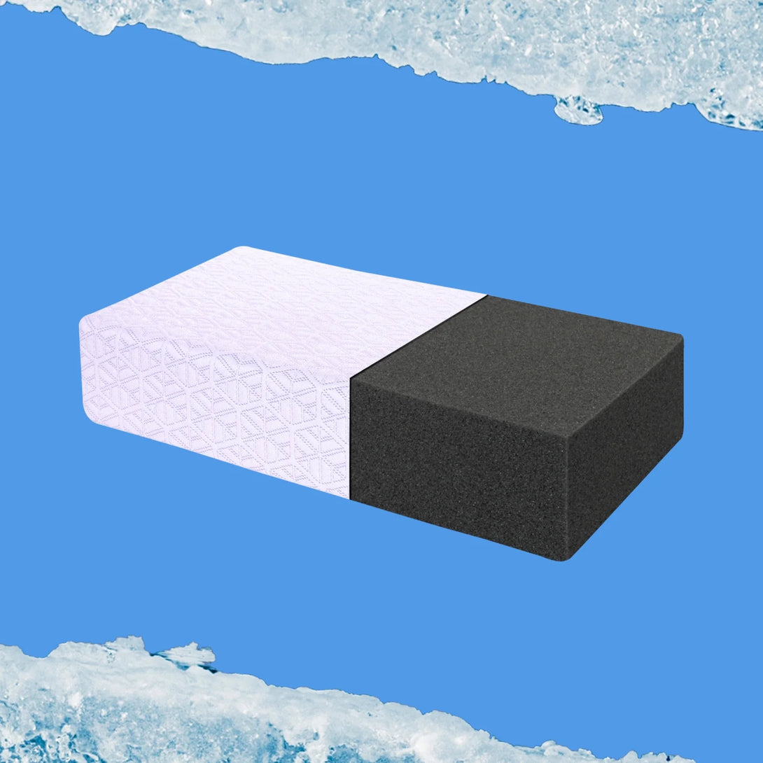 Fall asleep faster. Sleep 10 degrees cooler. Wake up rested. The Ice Cube is specifically designed by side sleepers, for side sleepers of all shapes and sizes. By filling your 90-degree shoulder gap, The Ice Cube aligns your spine to relieve stress on your ear, neck, shoulder and back. A temperature regulating core is surrounded by a protective cloth barrier and cooling outer cover woven with ‘Frozen Fibers’ to keep you cool all night long. No more flipping your pillow in search of the cool side! This combination of support, comfort and longevity will relieve headaches, neck tension, shoulder pain, back pain and provide cool, restful sleep.