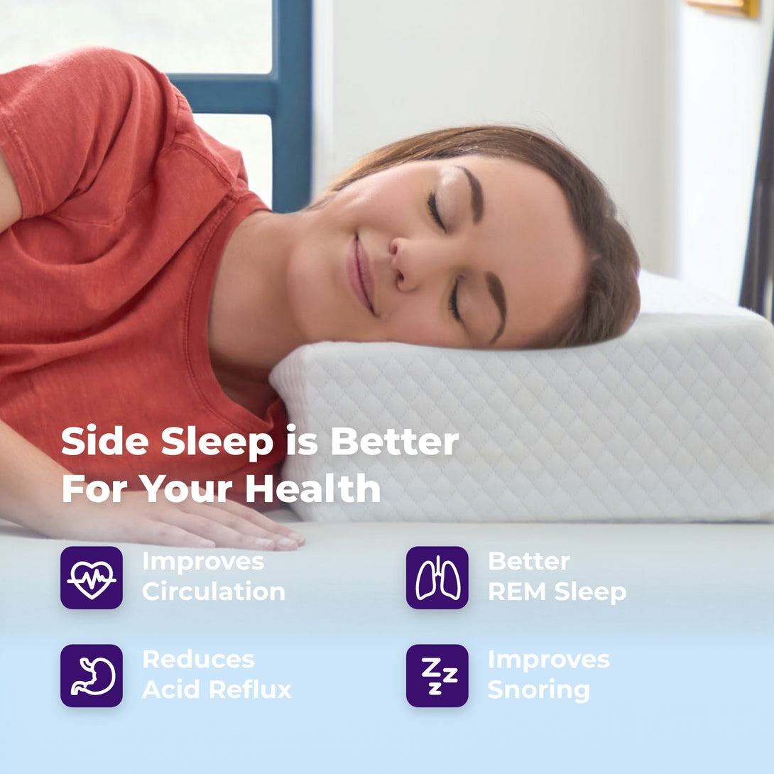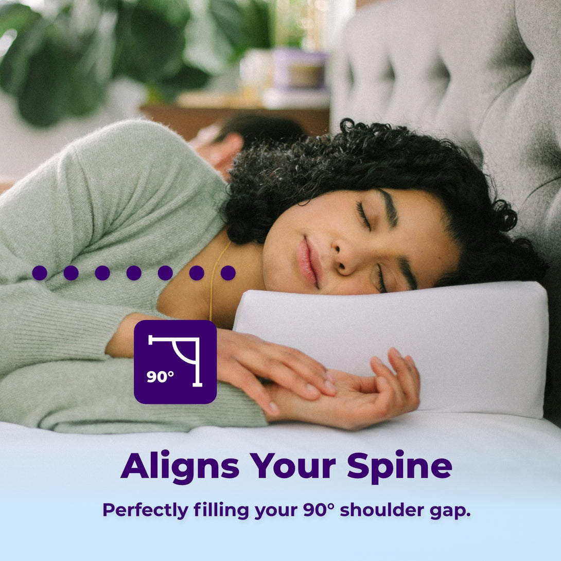 Fall asleep faster. Stay asleep longer. Wake up rested. The Side Cube is specifically designed by side sleepers, for side sleepers of all shapes and sizes. By filling your 90-degree shoulder gap, The Side Cube aligns your spine to relieve stress on your ear, neck, shoulder and back. The Stretchy Soft Pillowcase is smooth and cushions your head. The breathable, removable, machine-washable cover features canals to allow air flow to naturally keep you cool all night. The Aero Foam Core regulates temperature and eliminates the need to repeatedly flip the pillow to the 'cool' side. This combination of support and comfort will relieve headaches, neck tension, shoulder pain, back pain and the general tiredness that results from a poor night’s sleep.